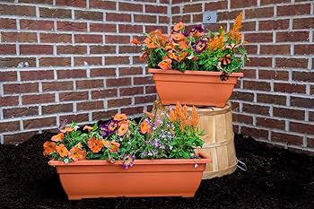 Amazon Com Backyardbounty Rectangle Planter Box 16 Inch Indoor Outdoor Rectangular Planter Durable Uv Resistant 2 Gallon Plastic Window Box Trough Use For Herbs Succulents Vegetables Terracotta Patio Lawn Garden